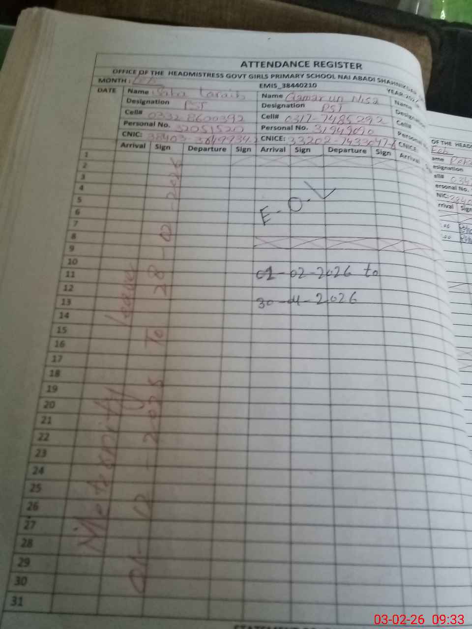 | Name: SA**** LA**** Designation: (School Headmaster's/Headmistress's) PST Phone/Cell Number: 03**** |