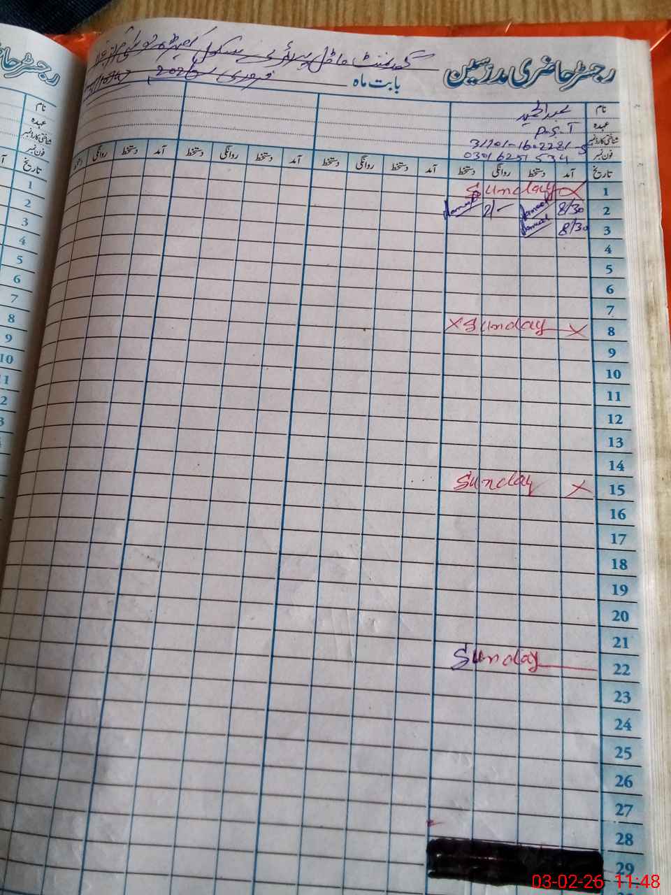 | CNIC | Full Name | Designation | R/C | Absence During Last Calender Month |