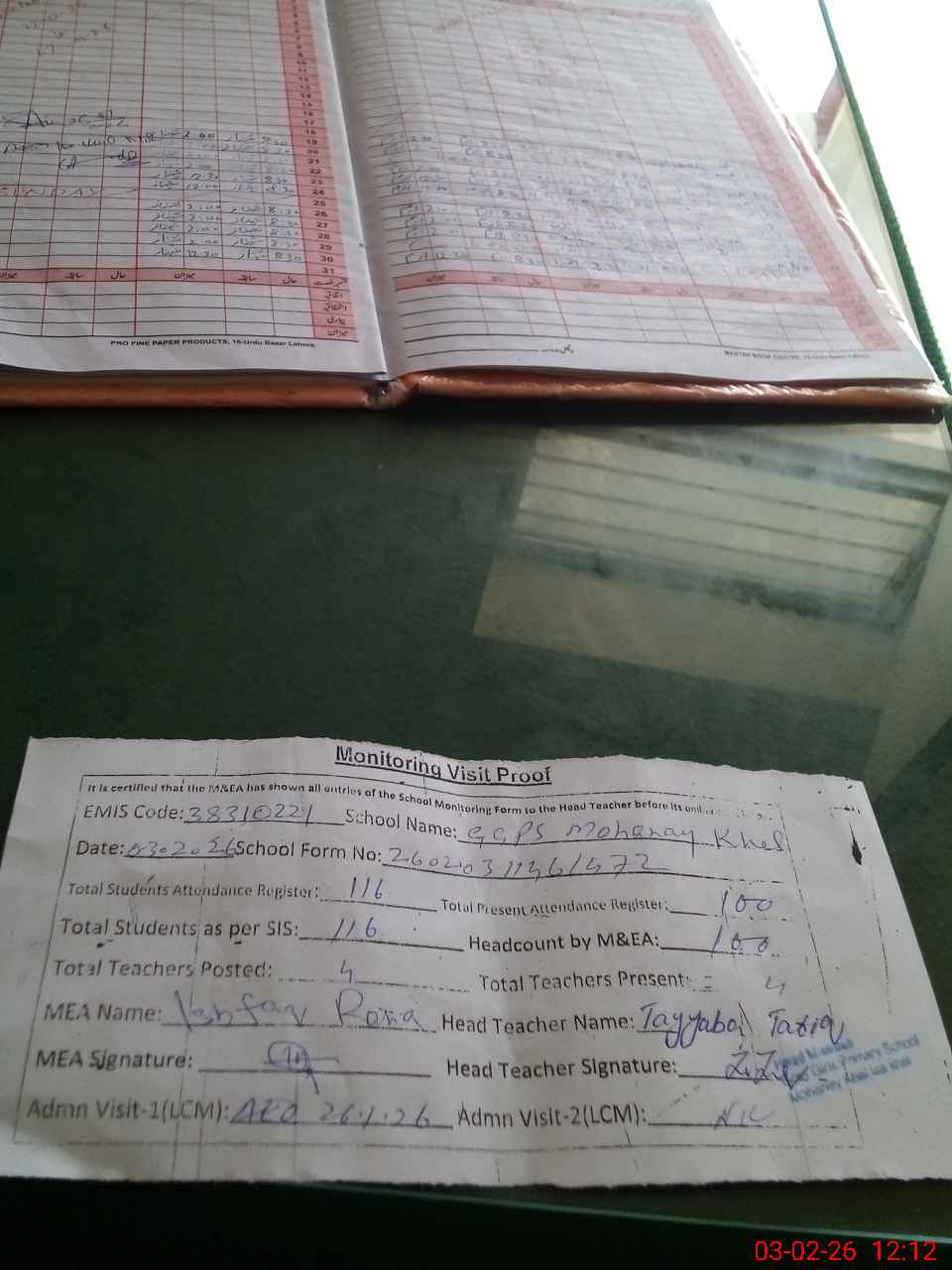 | EMIS Code: 38310221 | Name of School: GGPS MOHANEY KHEL | |||