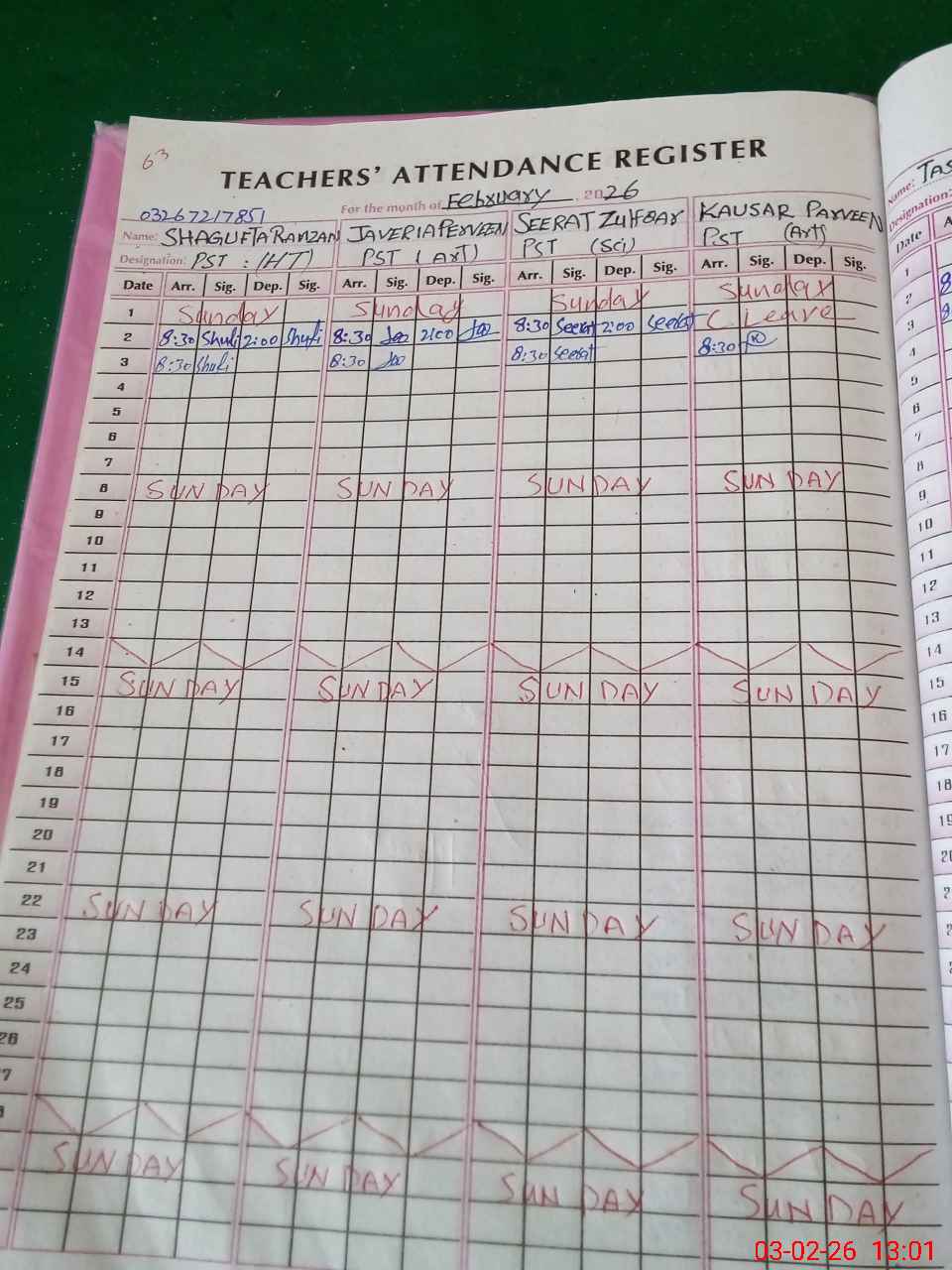 | Name: Sh**** Ra**** Designation: (School Headmaster's/Headmistress's) PST Phone/Cell Number: 03**** |