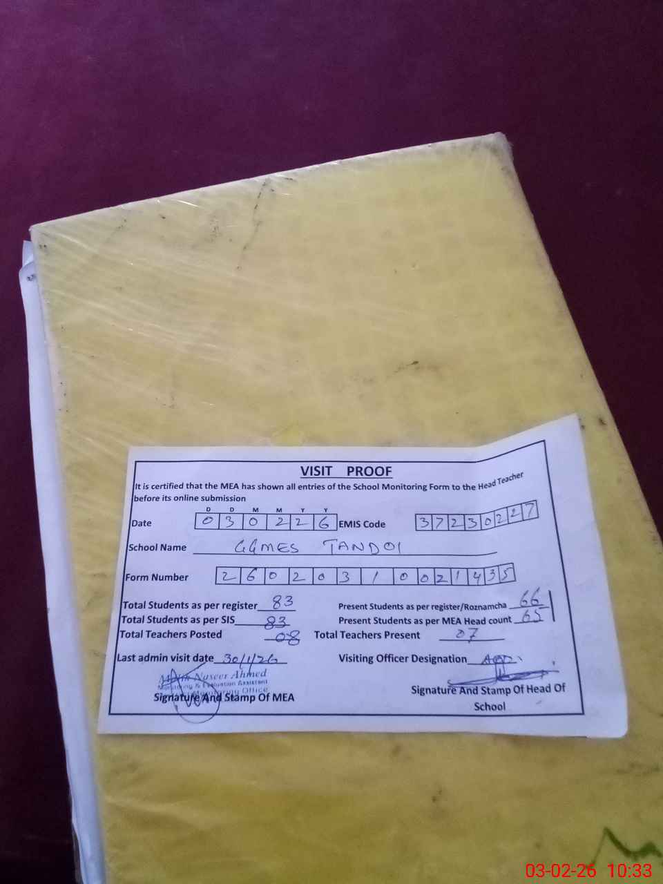 | EMIS Code: 37230227 | Name of School: GGMES TANDOI | |||