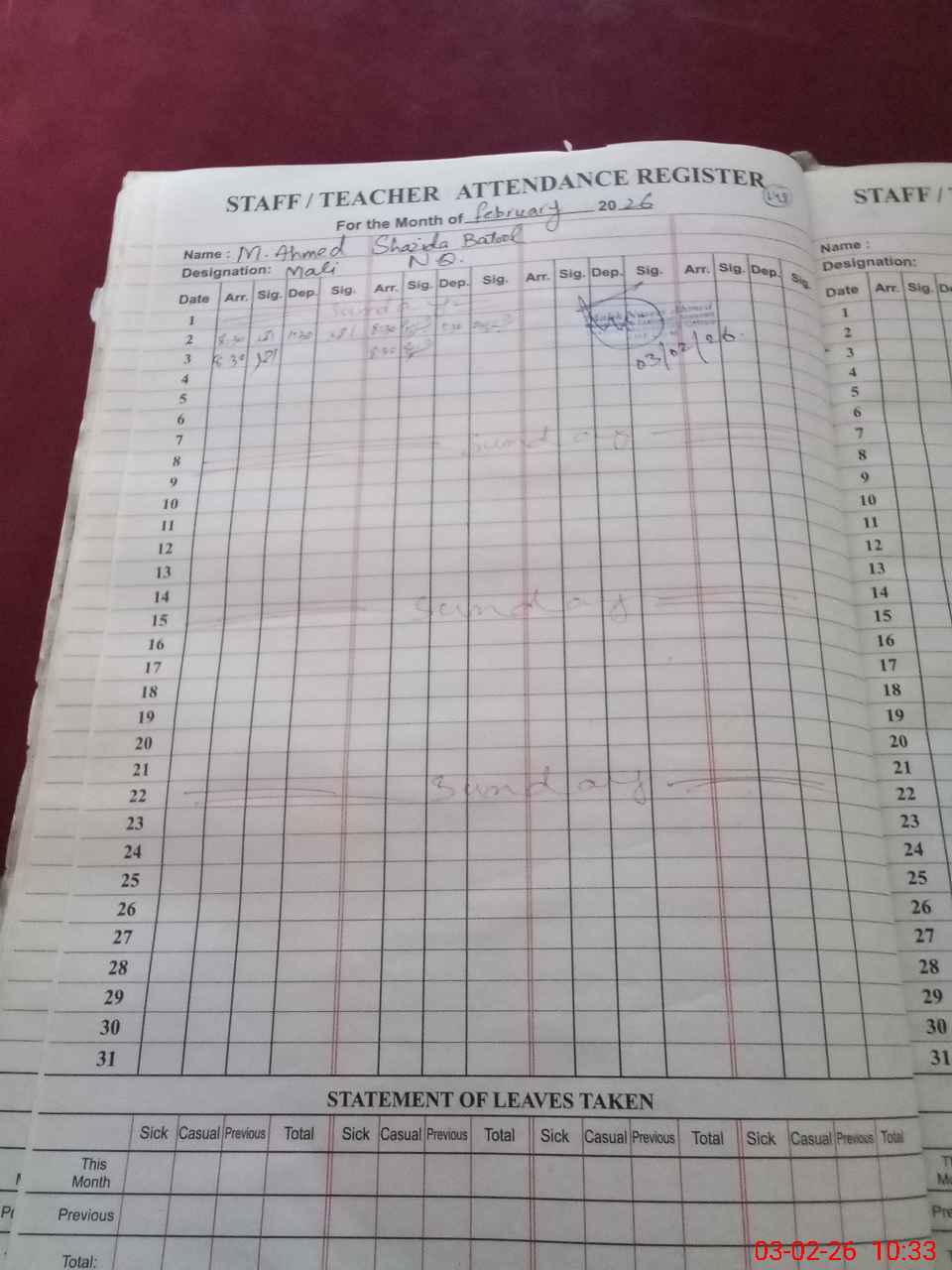 | Monitoring Date: 03-02-2026 | Start Time: 03-02-2026 10:02 AM | End Time: 03-02-2026 10:35 AM | Name of MEA: Na**** Ah**** | |