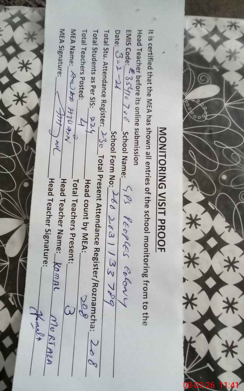 | EMIS Code: 35410708 | Name of School: GPS PEOPLES COLONY | |||