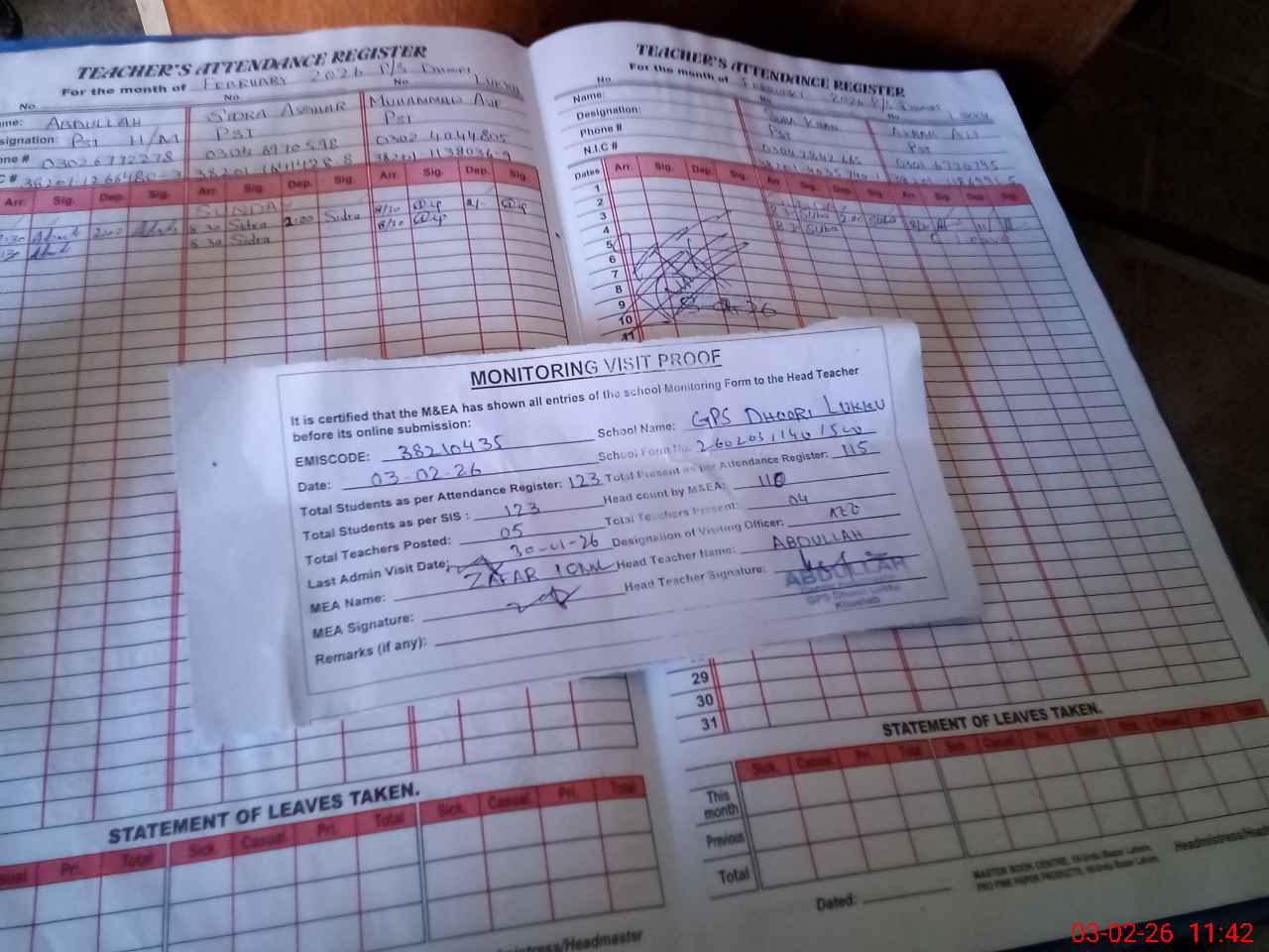 | EMIS Code: 38210435 | Name of School: GPS DHORI LUKOO | |||