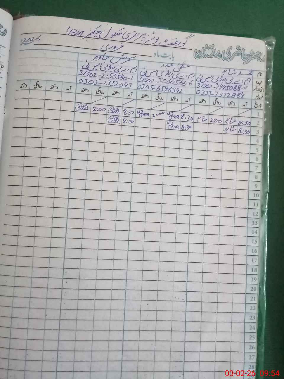 | Name: MU**** SH**** Designation: (School Headmaster's/Headmistress's) PST Phone/Cell Number: 03**** |