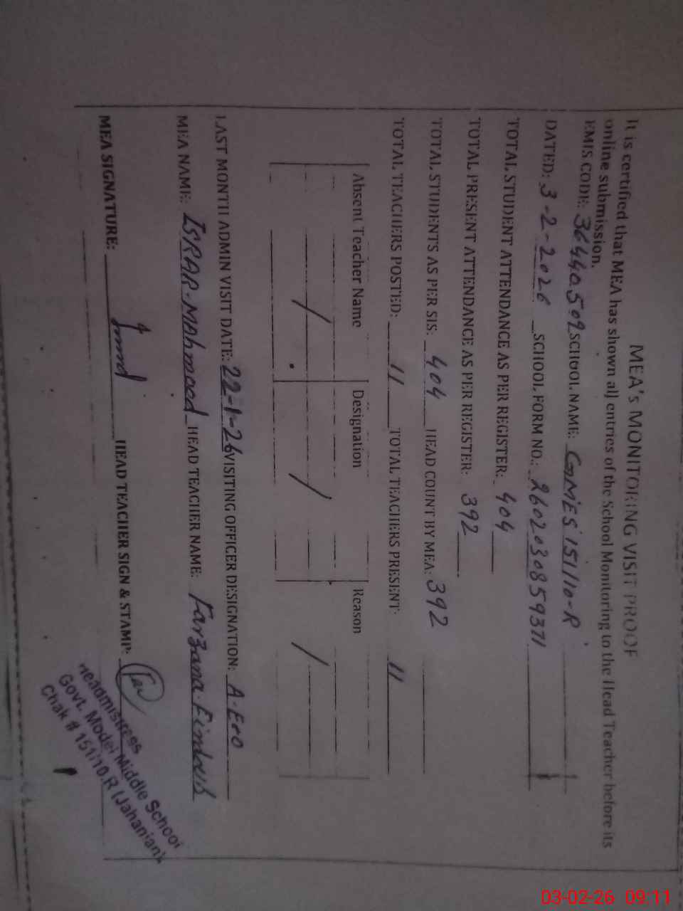 | EMIS Code: 36440509 | Name of School: GMMS 151/10-R, JAHANIAN | |||