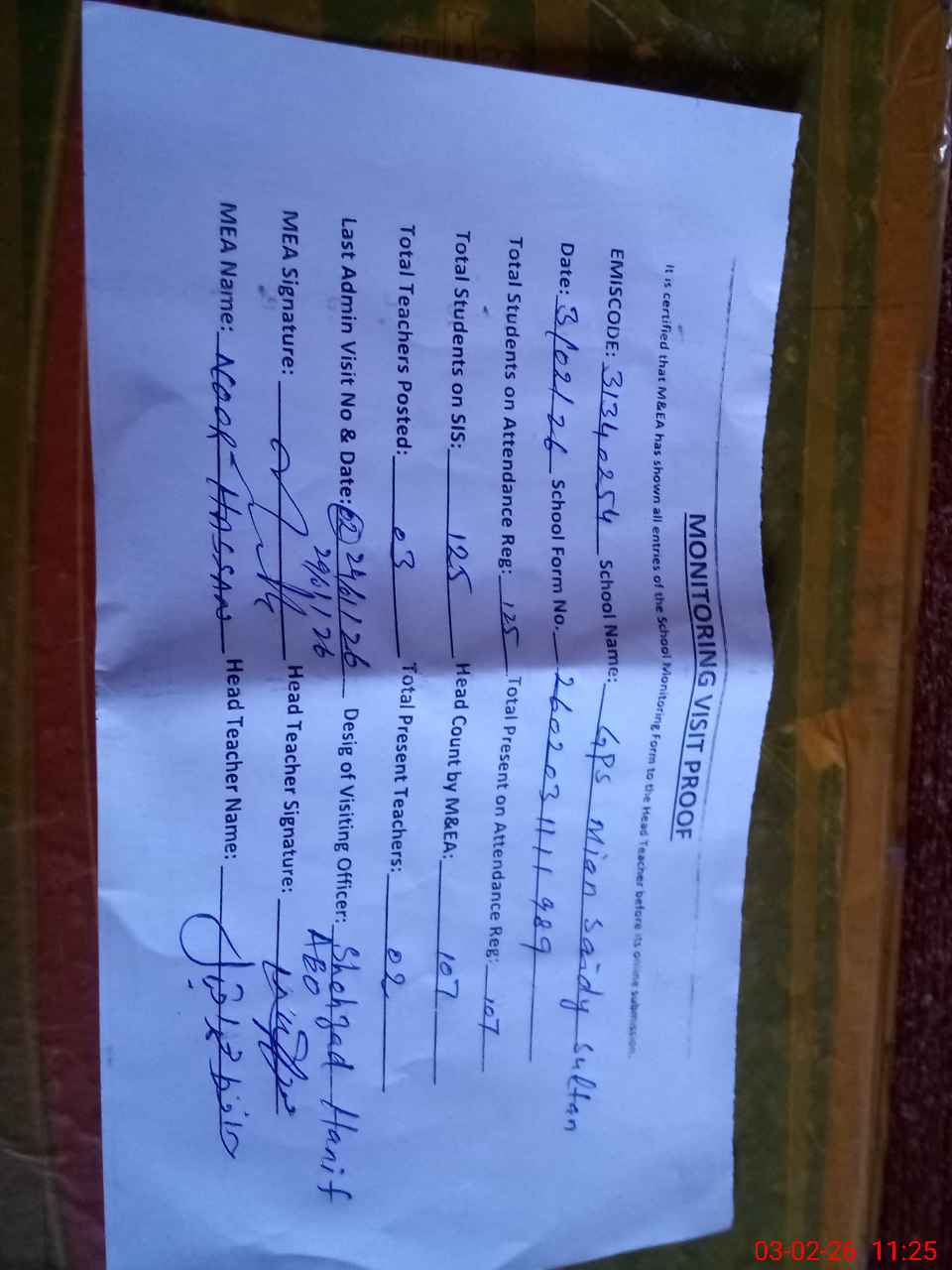 | EMIS Code: 31340254 | Name of School: GPS MIANS SAIDY SULTAN | |||