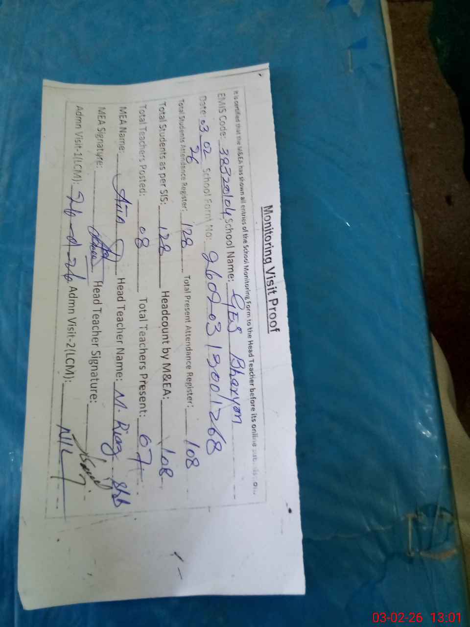 | EMIS Code: 38320104 | Name of School: GES BHARYON WALA | |||