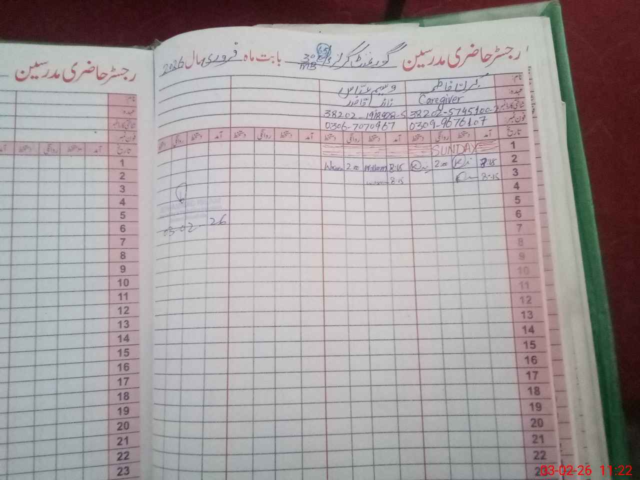 | CNIC | Full Name | Designation | R/C | Absence During Last Calender Month |