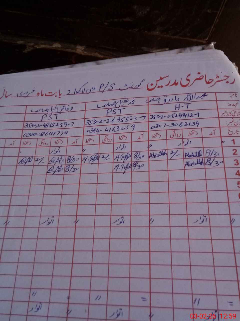 | Name: AB**** FA**** Designation: (School Headmaster's/Headmistress's) PST Phone/Cell Number: 03**** |