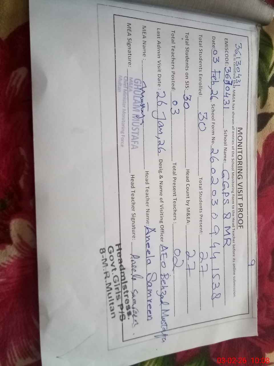 | EMIS Code: 36130431 | Name of School: GGPS 8 MR | |||
