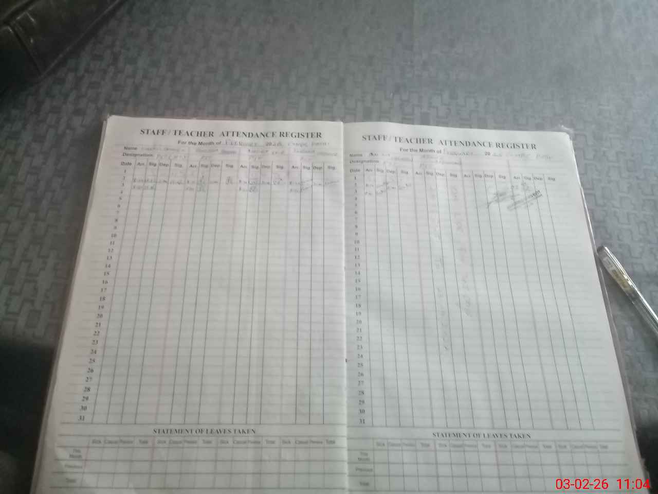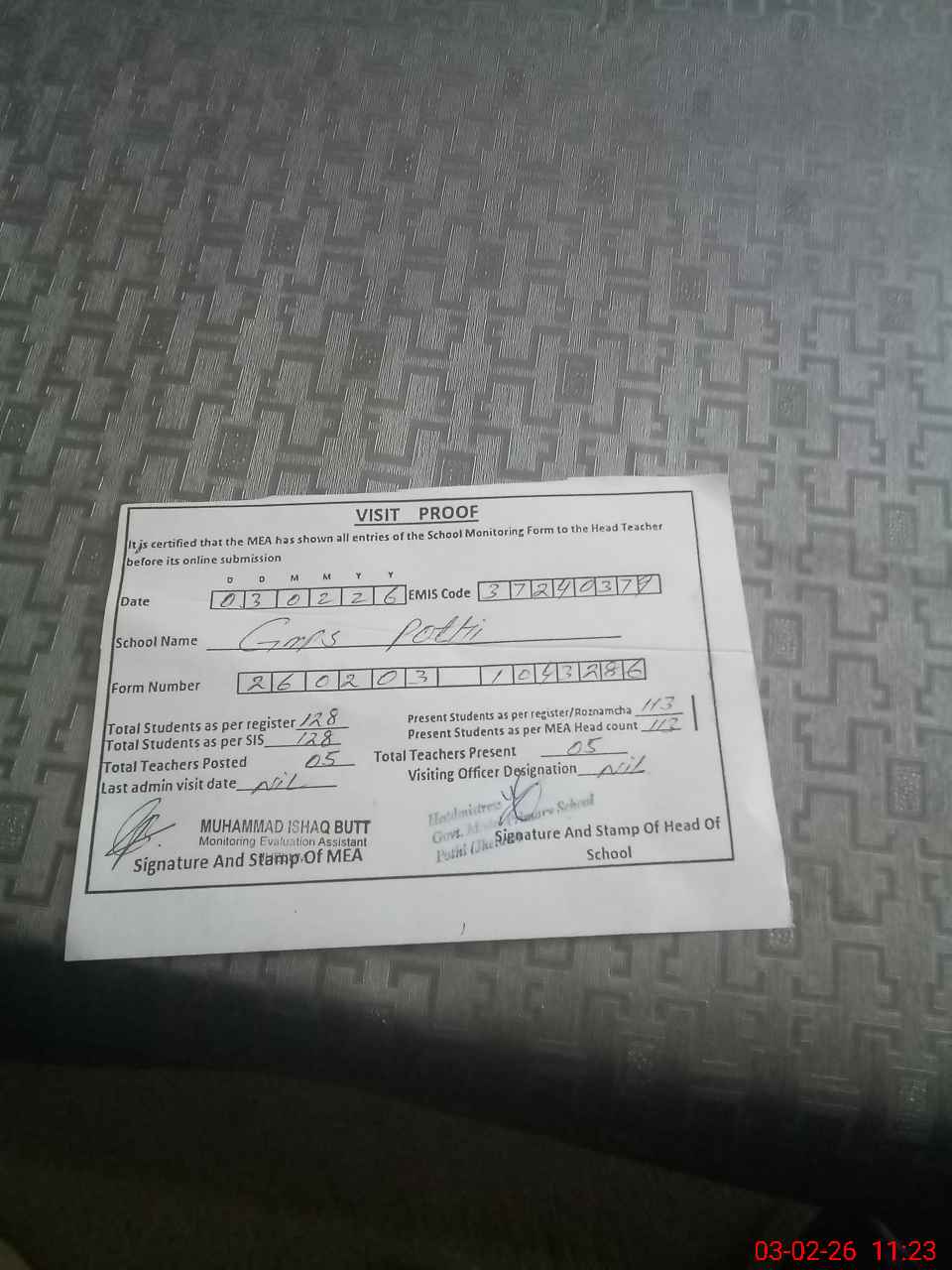 | Attendance Register | Head Teacher | MEA with School | Visit Proof |
