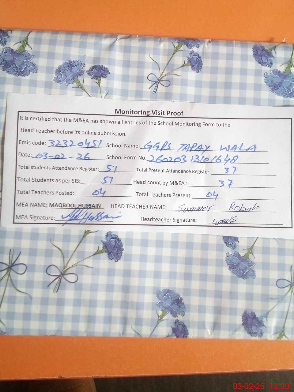 | EMIS Code: 32320451 | Name of School: GGPS TAPPAY WALA | |||