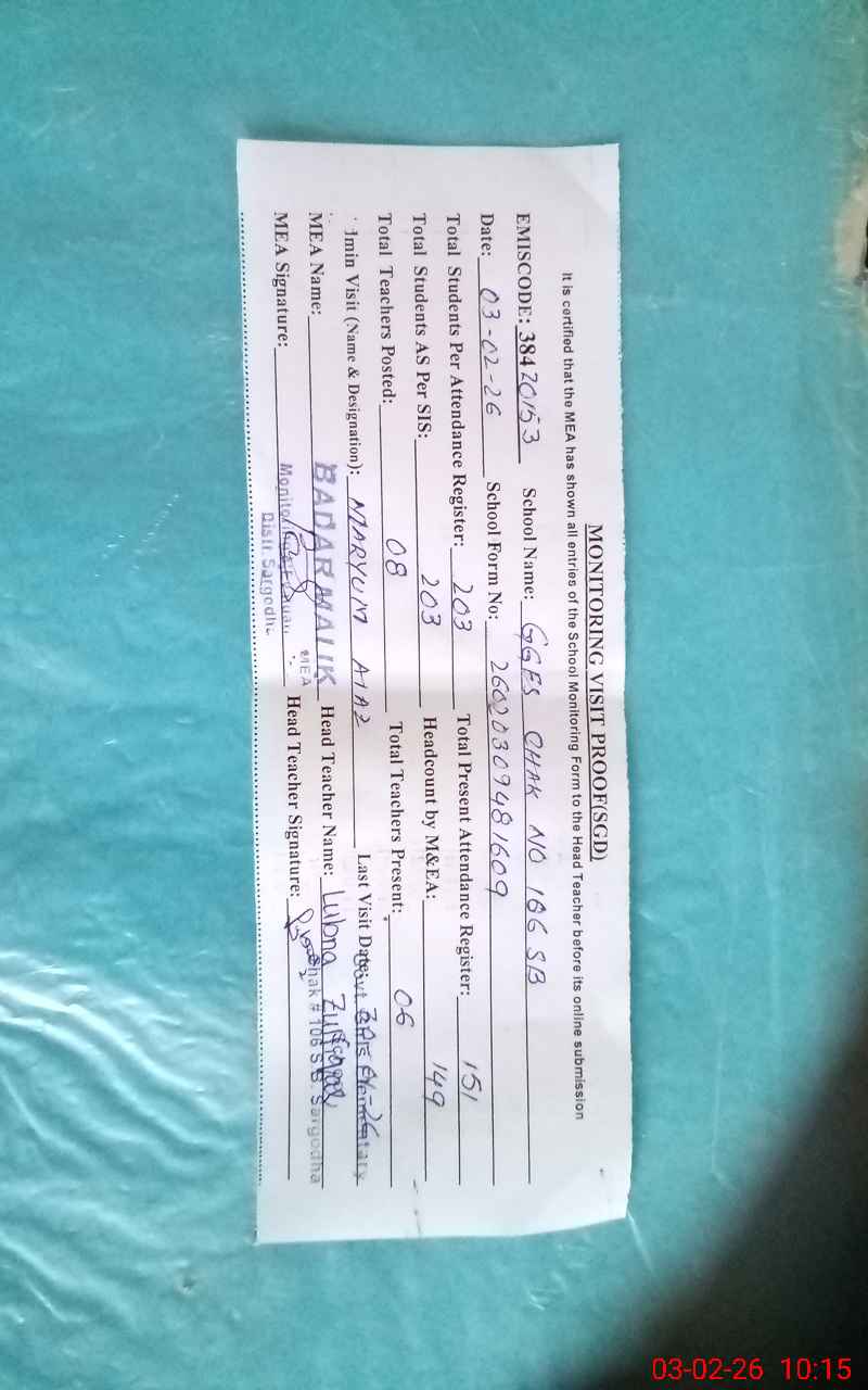 | EMIS Code: 38420153 | Name of School: GGES CHAK NO.106 SB | |||
