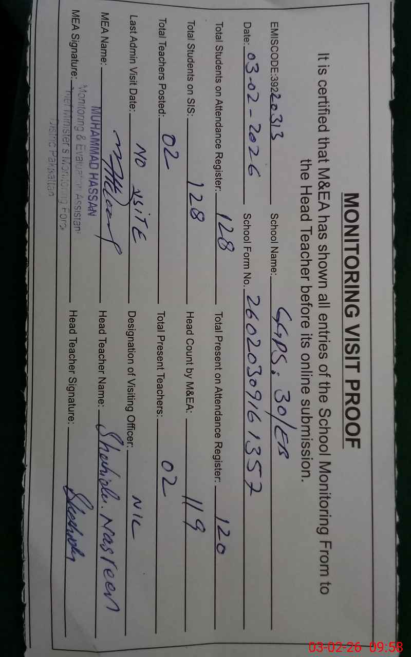 | EMIS Code: 39220313 | Name of School: GGPS CHAK 30/EB KHURD P/O 30/EB KALAN | |||
