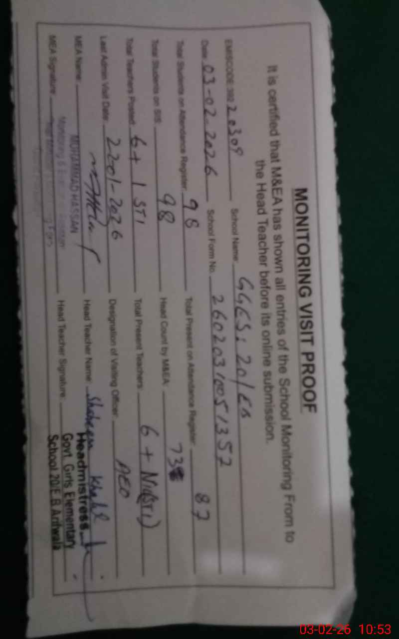 | EMIS Code: 39220309 | Name of School: GGES 20 EB POST OFFICE 30 EB | |||