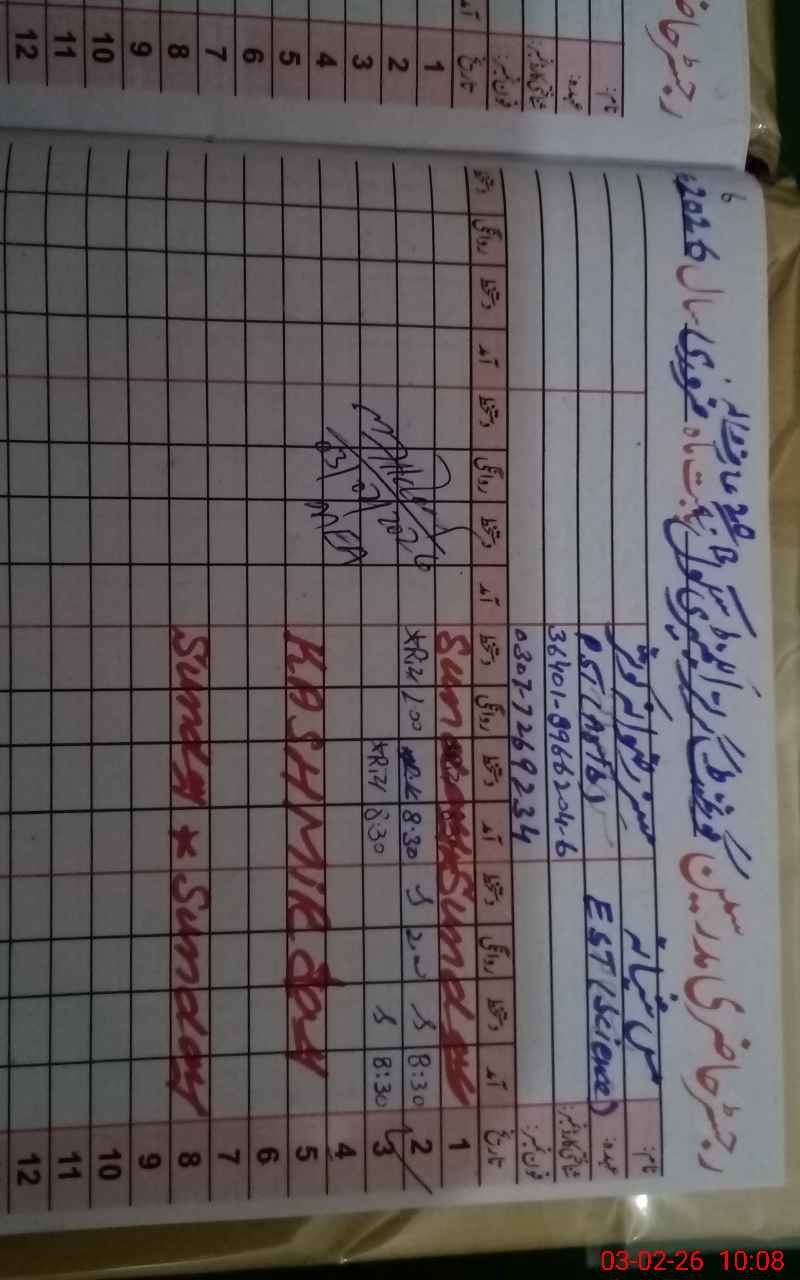 | Name: Sh**** Kh**** Designation: (School Headmaster's/Headmistress's) EST Phone/Cell Number: 03**** |