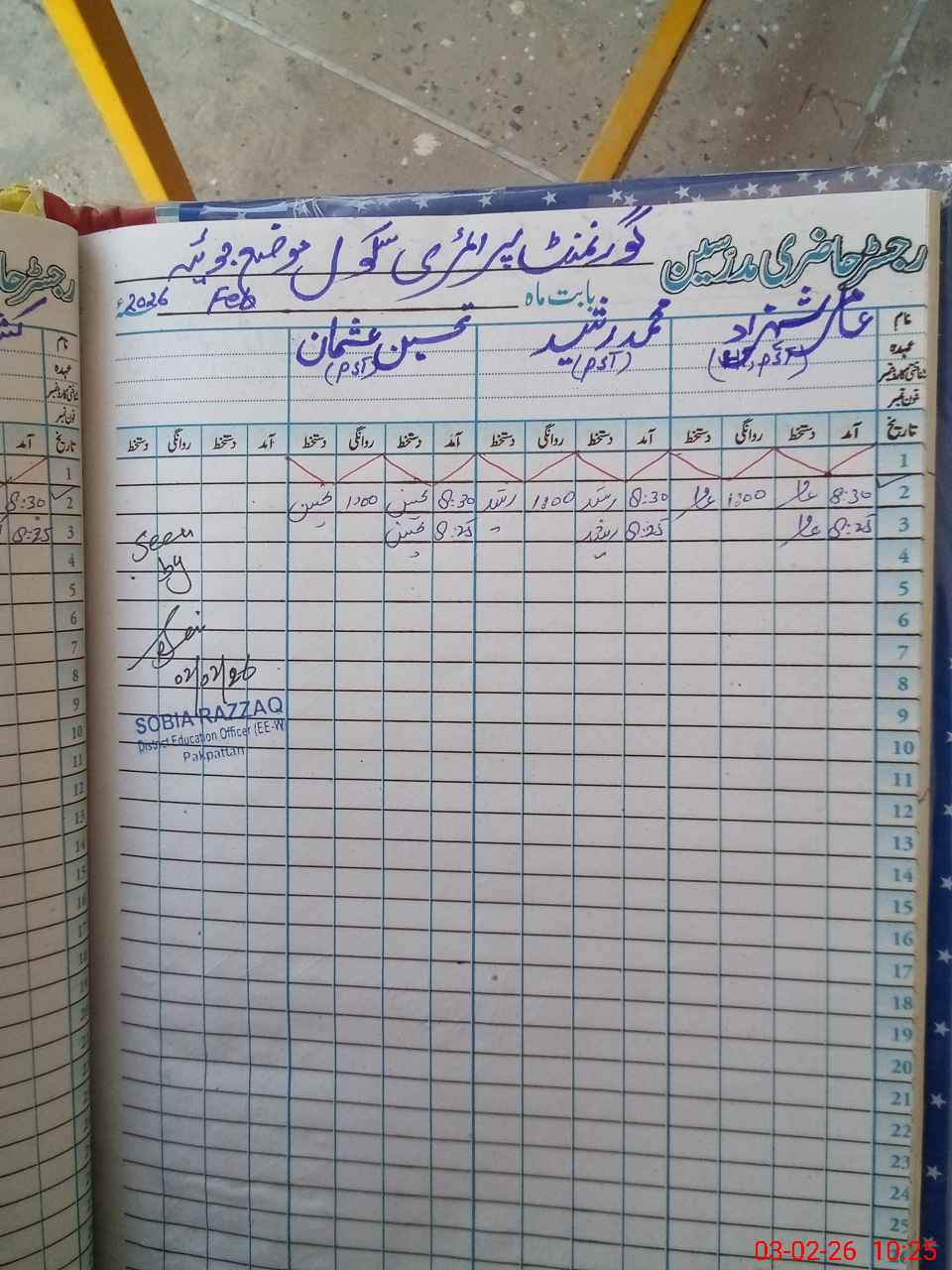 | Name: AA**** SH**** Designation: (School Headmaster's/Headmistress's) PST Phone/Cell Number: 03**** |