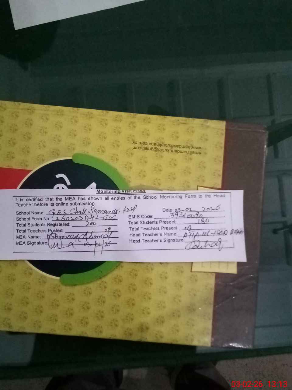 | EMIS Code: 39310090 | Name of School: GES CHAK 42/SP SAMUNDARI | |||