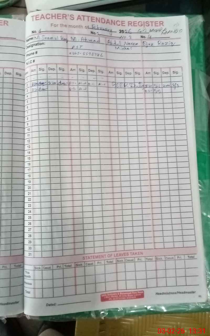 | Name: MIN**** ULHA**** Designation: (School Headmaster's/Headmistress's) PST Phone/Cell Number: 03**** |