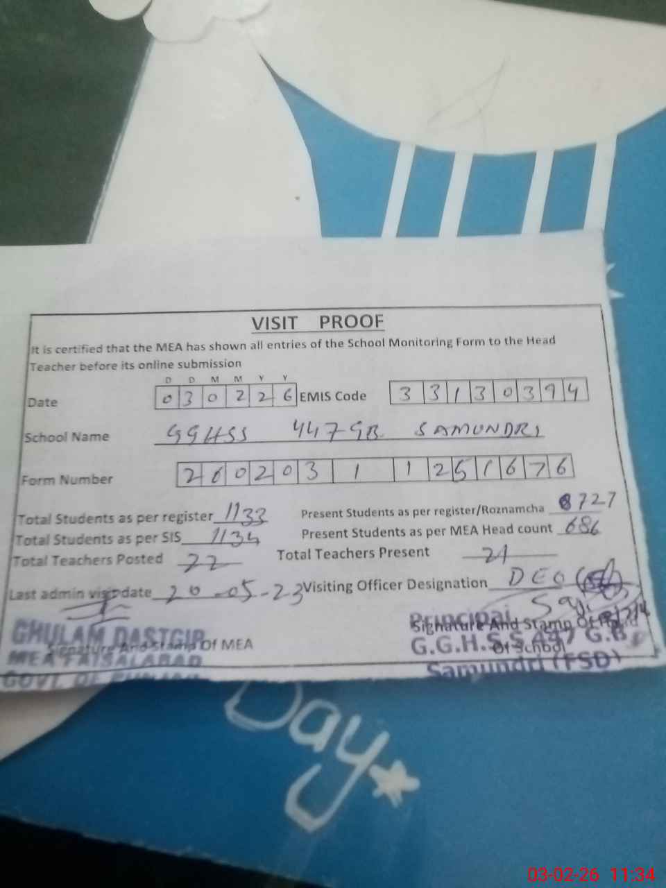 | EMIS Code: 33130394 | Name of School: GGHSS CHAK NO. 447 GB SAMUNDRI | |||