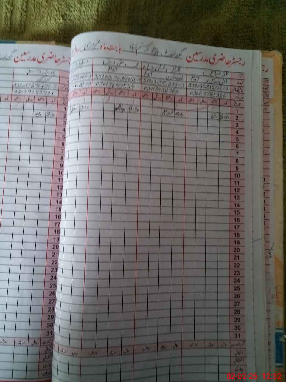 | CNIC | Full Name | Designation | R/C | Absence During Last Calender Month |