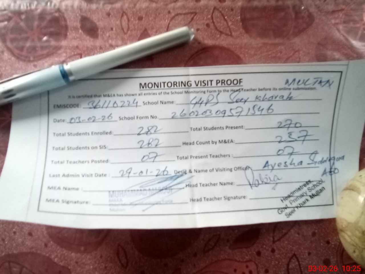 | EMIS Code: 36110224 | Name of School: GGPS SEER KHARAK NEAR GULSHAT COLONY | |||