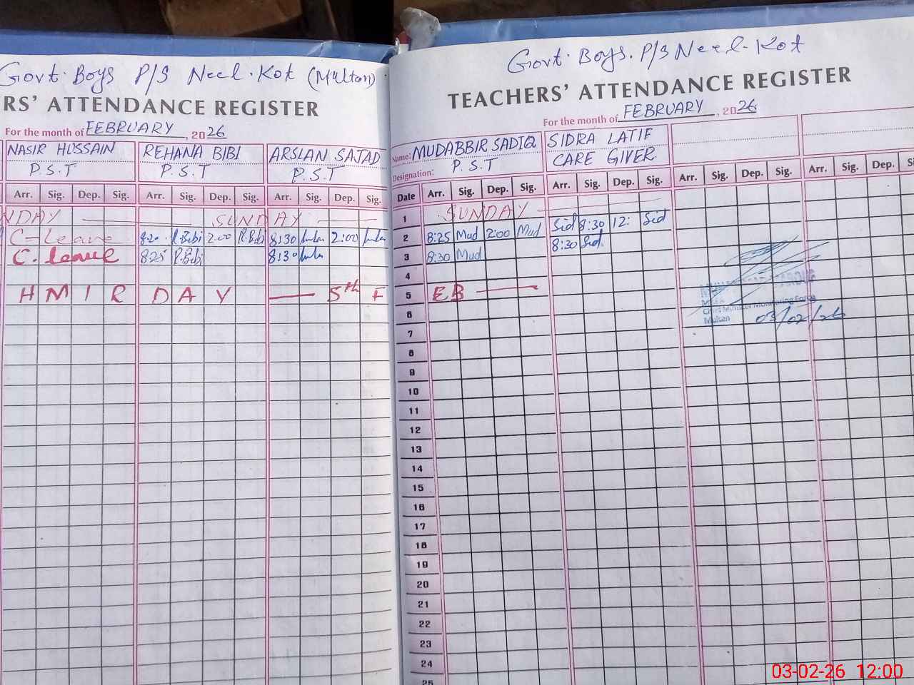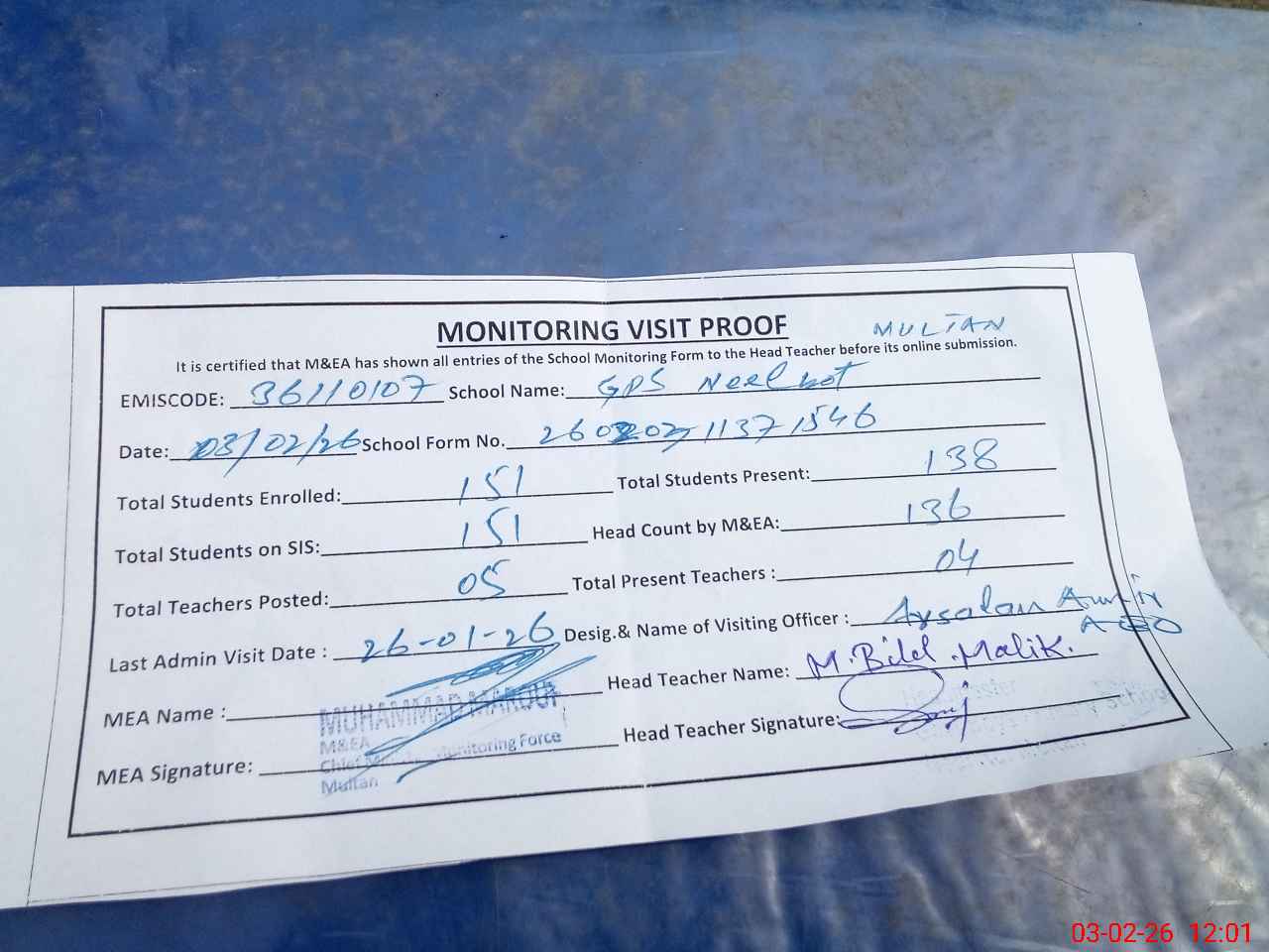 | EMIS Code: 36110107 | Name of School: GPS NEEL KOT NEEL KOT BOSAN ROAD MULTAN | |||