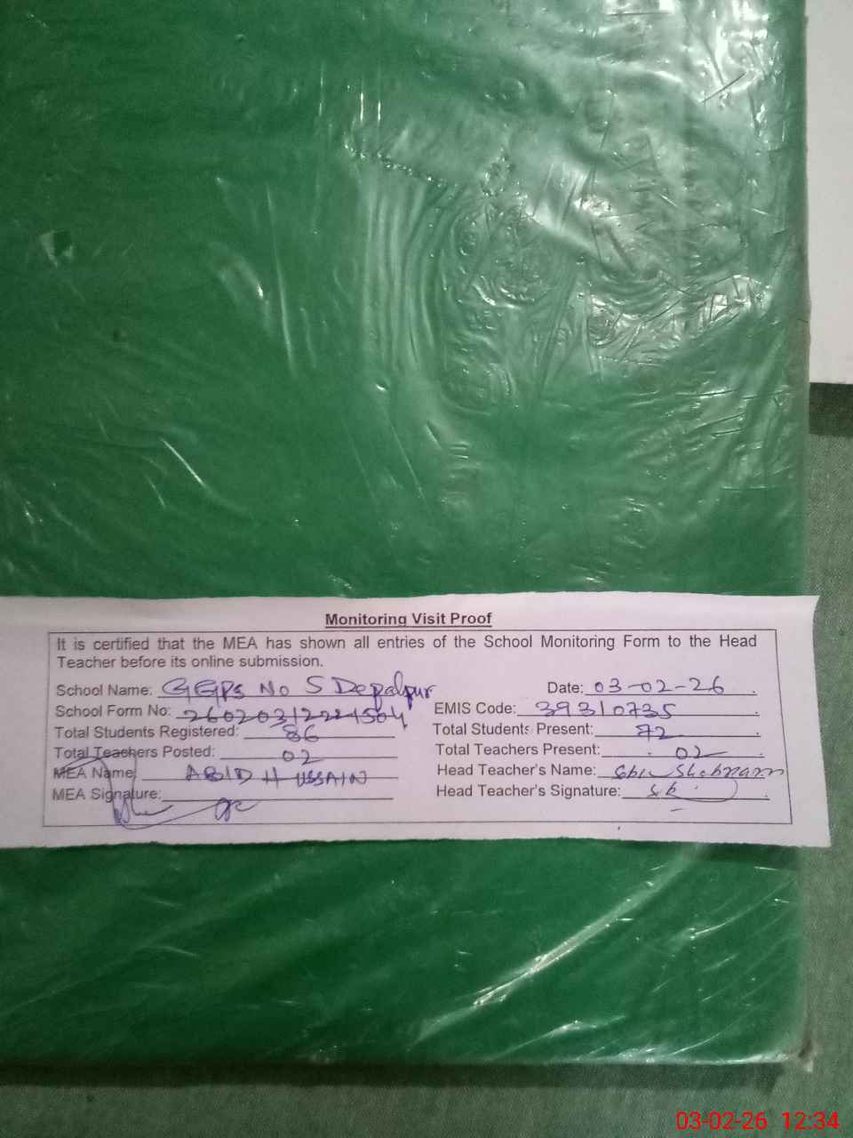 | EMIS Code: 39310735 | Name of School: GGPS NO 5 DEPALPUR | |||