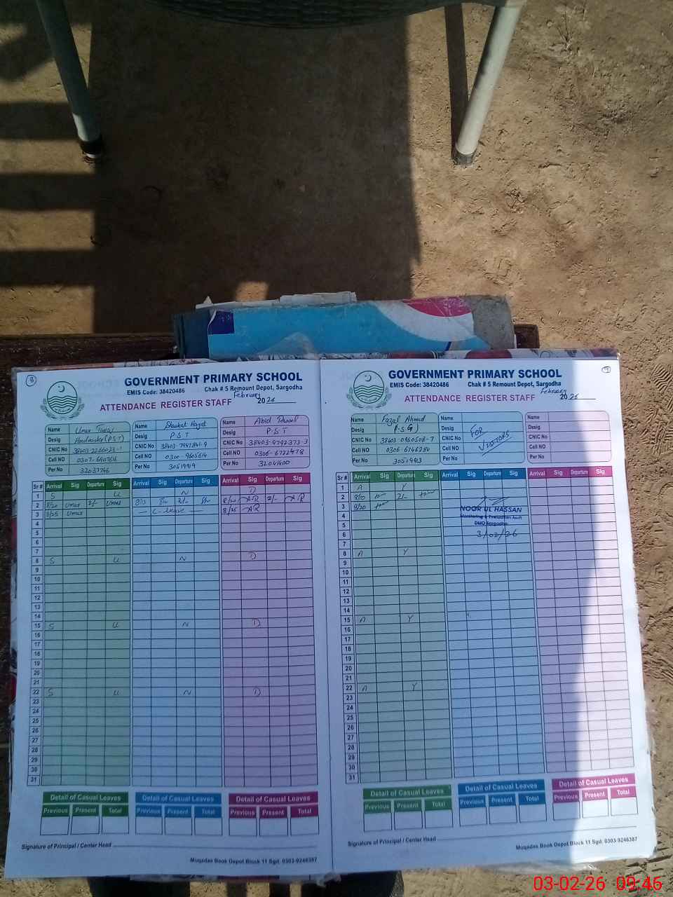 | EMIS Code: 38420486 | Name of School: GPS CHAK NO.5 REMOUNT DEPOT | |||
