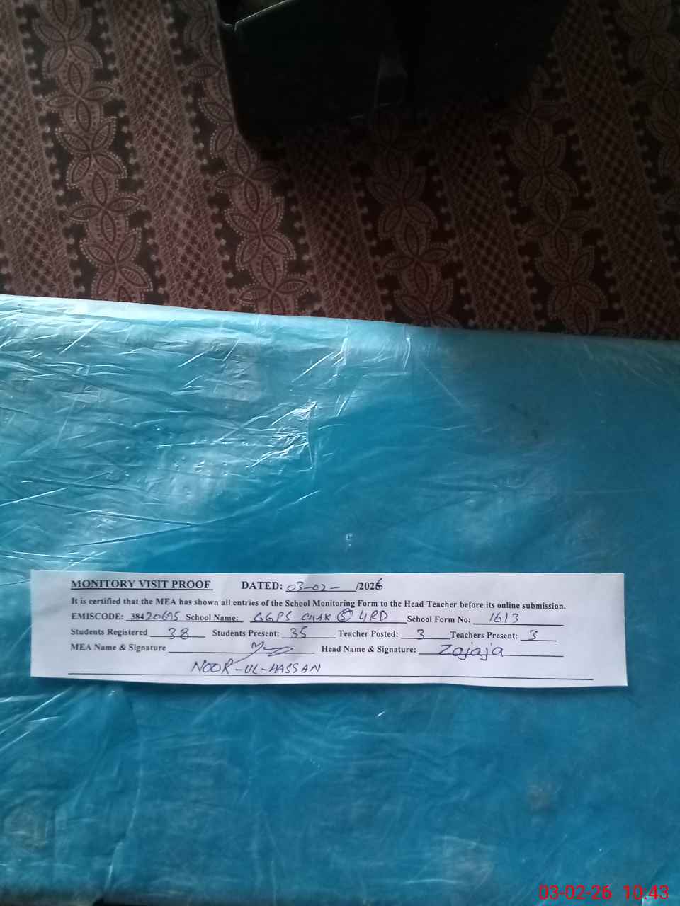 | EMIS Code: 38420695 | Name of School: GGPS NO 5 CHAK NO 4 REMOUNT DEPOT | |||