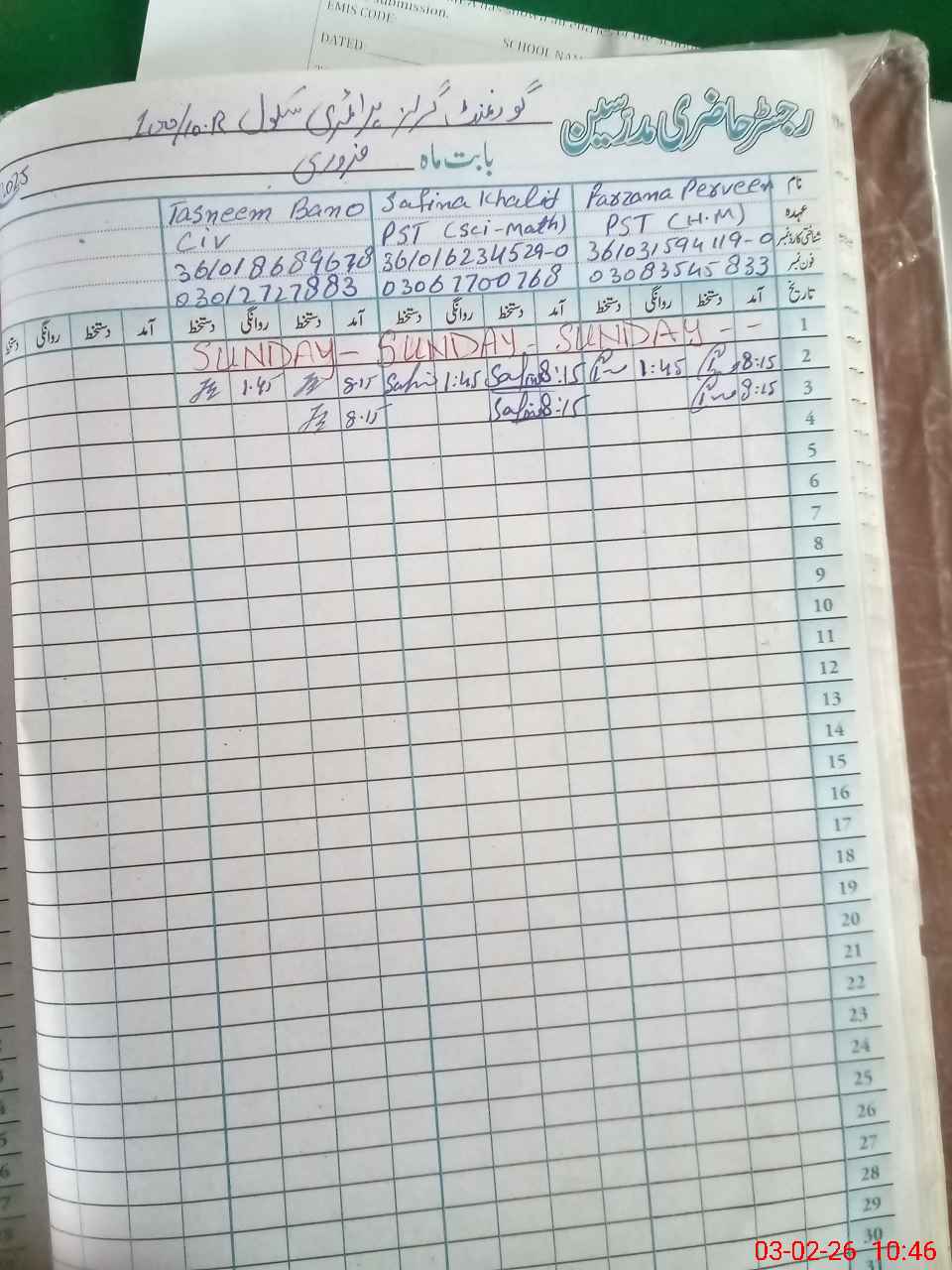 | Name: FA**** PE**** Designation: (School Headmaster's/Headmistress's) PST Phone/Cell Number: 03**** |