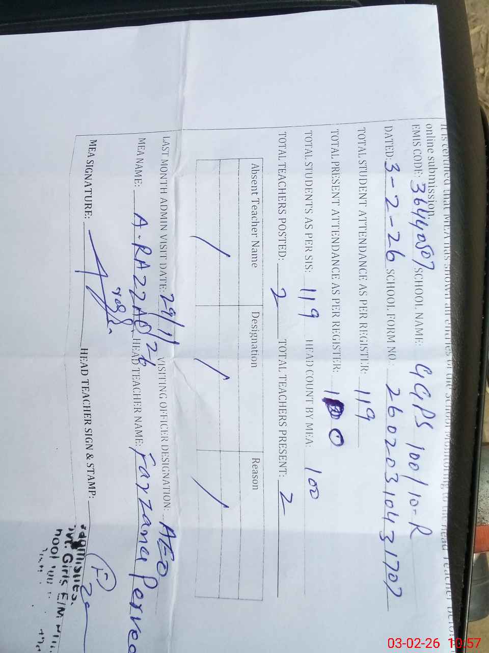 | EMIS Code: 36440507 | Name of School: GGPS 100-10/R, JAHANIAN | |||