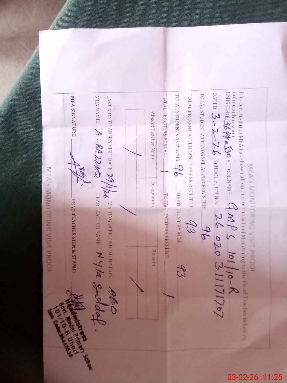 | EMIS Code: 36440530 | Name of School: GMPS 101/10-R DHOREE, JAHANIAN | |||