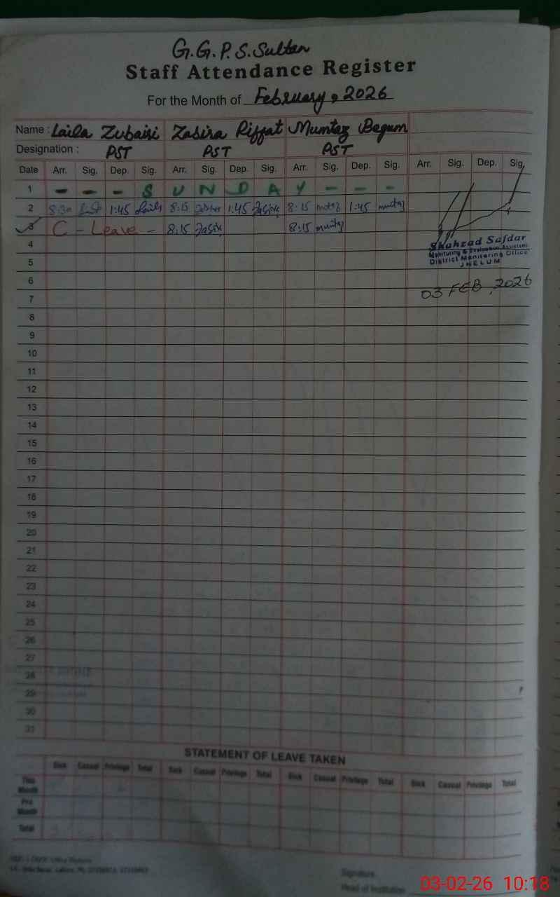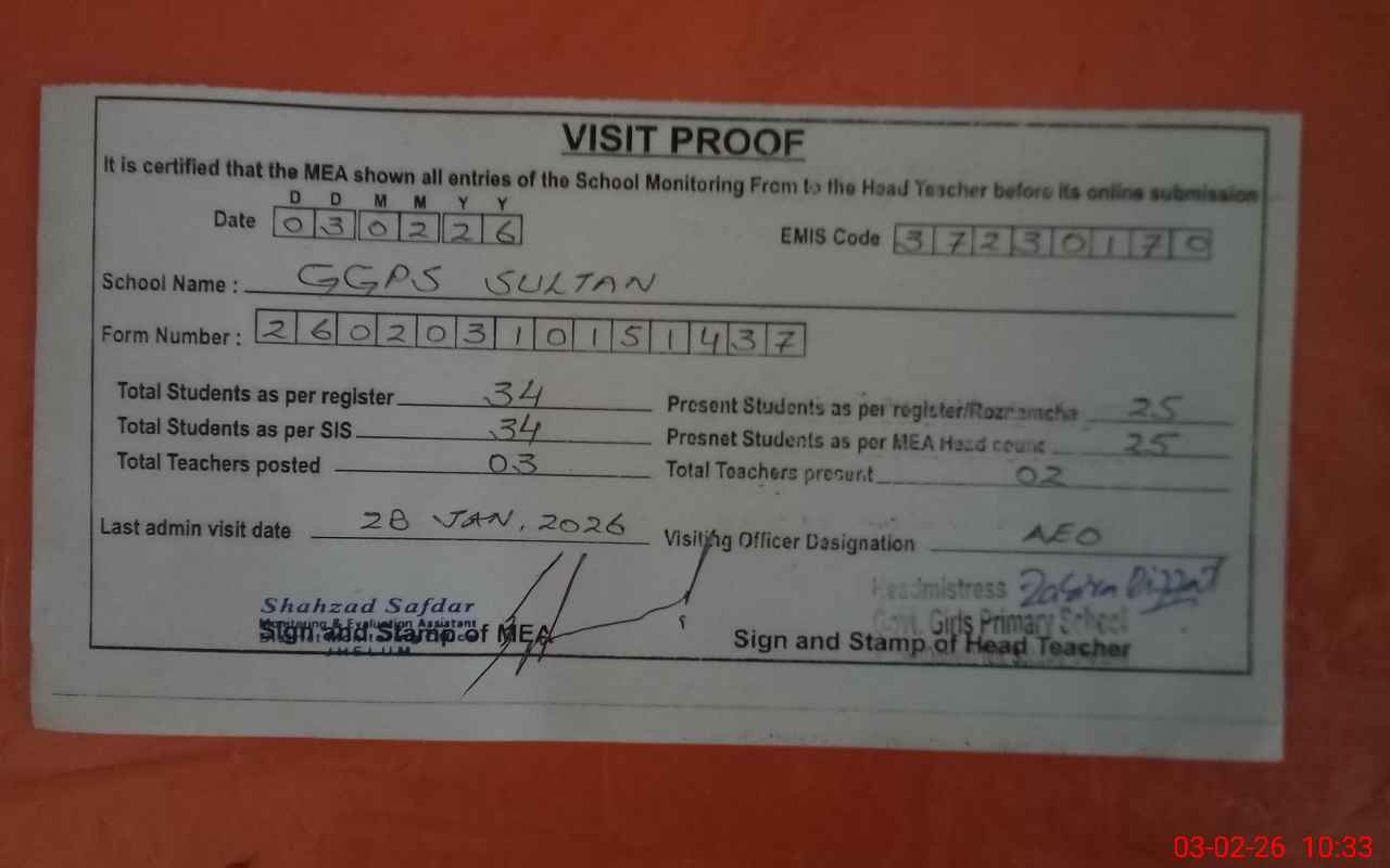 | EMIS Code: 37230170 | Name of School: GGPS SULTAN | |||