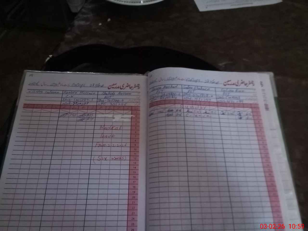 | Leave | Duty | Absent | Maternity | Medical | Ex- Pak |