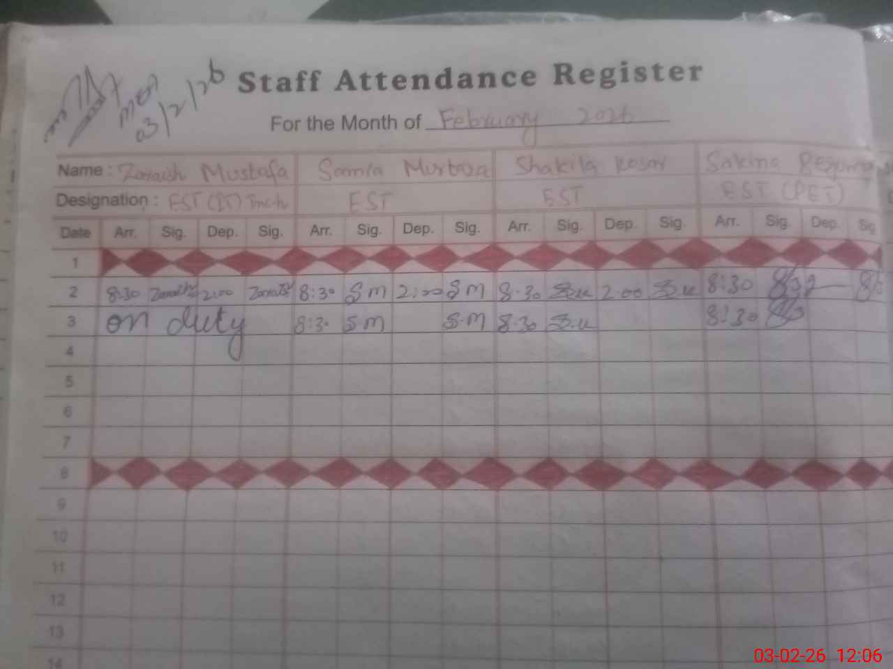 | Name: Za**** Mu**** Designation: (School Headmaster's/Headmistress's) ES T(IT) Phone/Cell Number: 03**** |