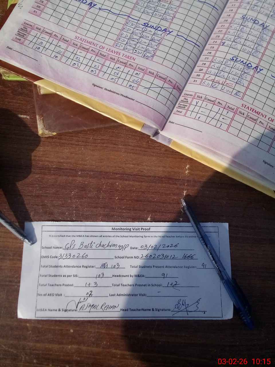 | EMIS Code: 31330260 | Name of School: GPS BASTI CHACHRAN 93/P | |||