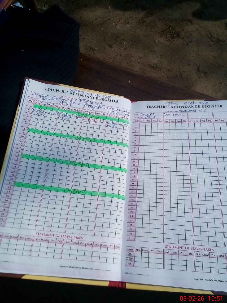 | Name: Im**** Is**** Designation: (School Headmaster's/Headmistress's) PST Phone/Cell Number: 03**** |