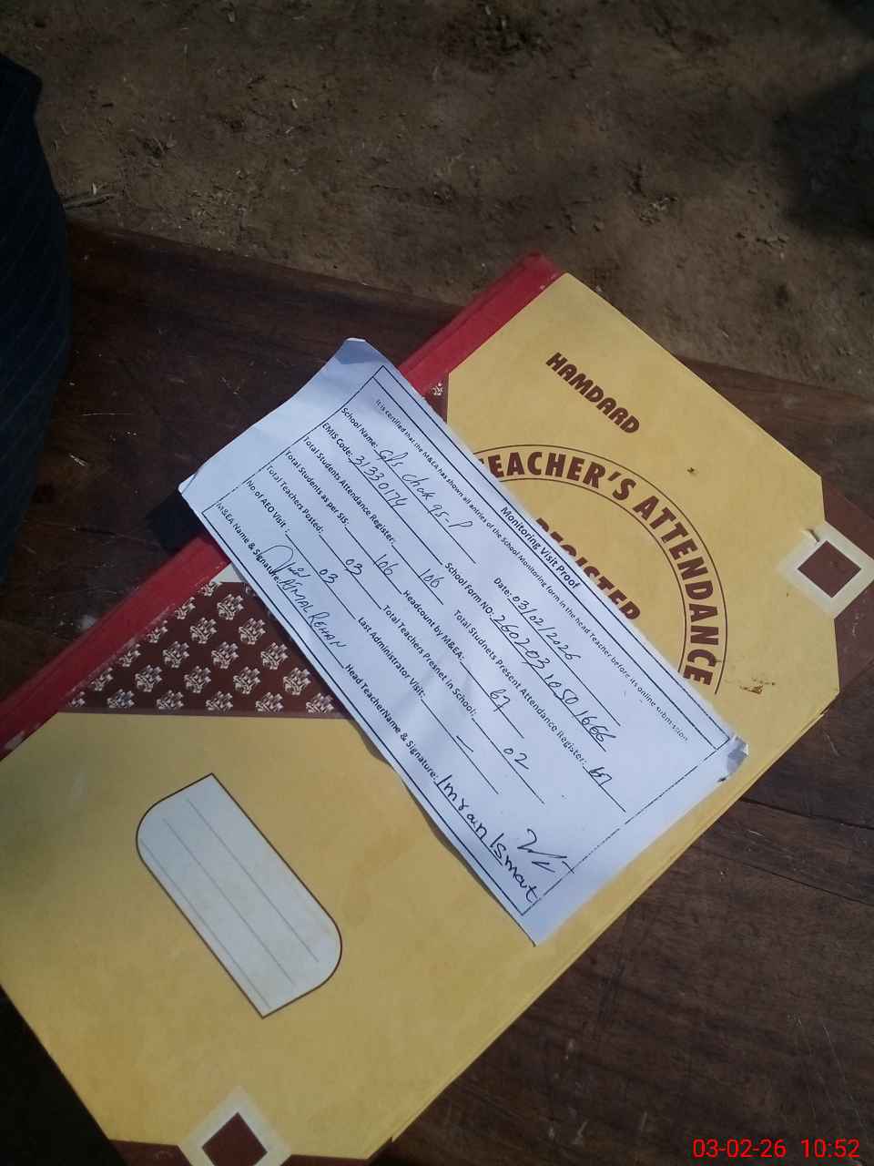 | Attendance Register | Head Teacher | MEA with School | Visit Proof |