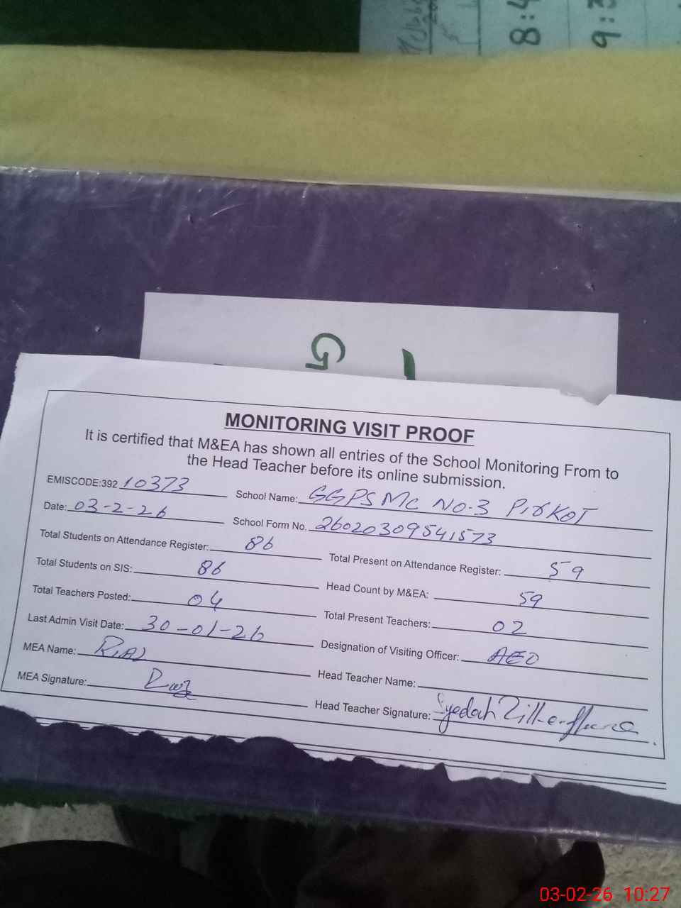 | EMIS Code: 39210373 | Name of School: GGPS MC NO. 3 PIR KOT PAKPATTAN | |||