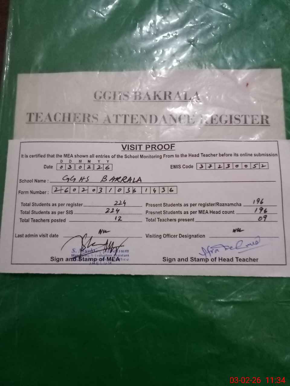 | EMIS Code: 37230052 | Name of School: GGHS BAKRALA | |||