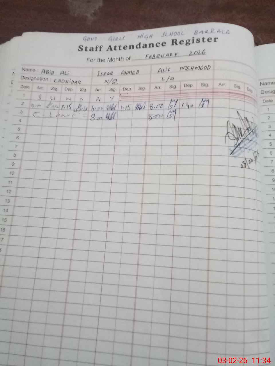 | 37**** | Ab**** Al**** | CHOWKIDAR | 2 | 0 | 0 | 0 | 0 | 0 | 0 | 0 | 2 | Casual | |