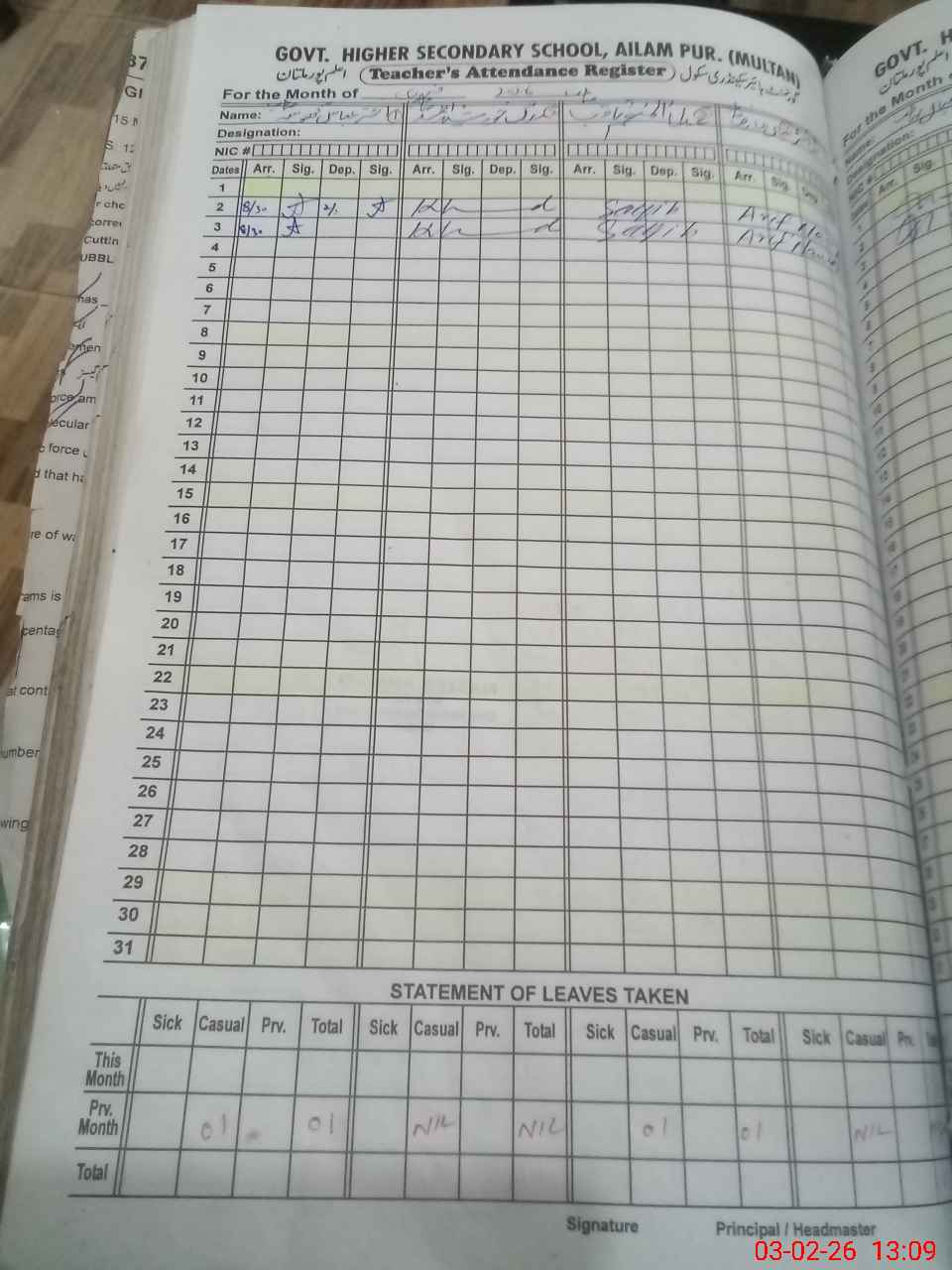 | District: MULTAN | Tehsil: MULTAN SADAR | Markaz: SECONDARY-WING | Level: H.Sec. | |