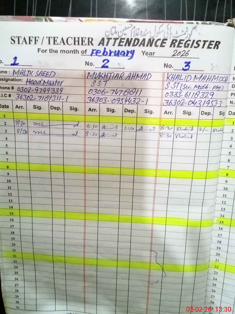 | Name: Ma**** Sa**** Designation: (School Headmaster's/Headmistress's) Headmaster Phone/Cell Number: 03**** |