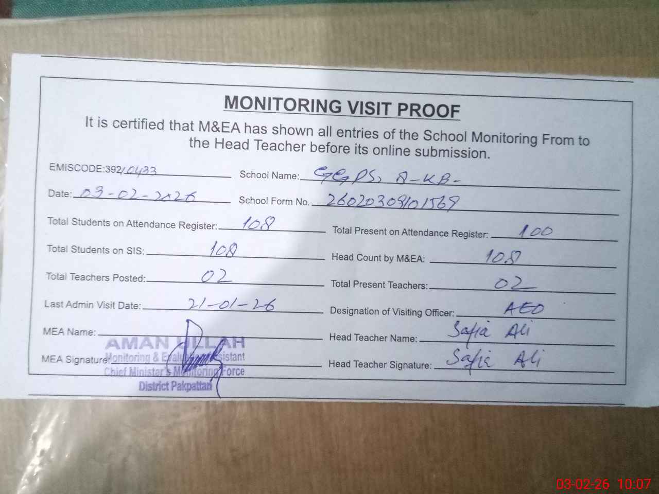 | EMIS Code: 39210433 | Name of School: GGPS CHAK 8 KB | |||