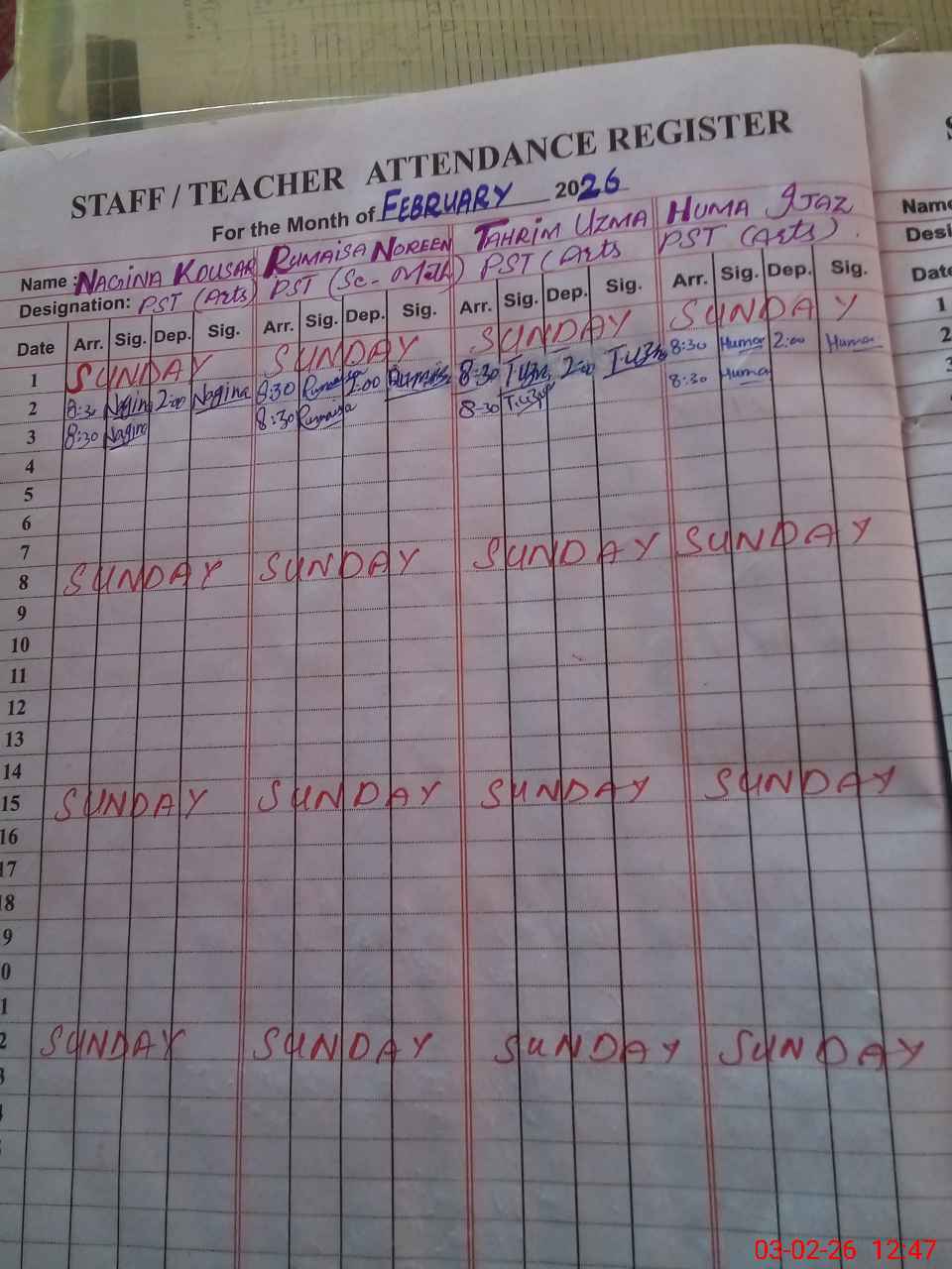 | Remarks (Use Separate Page if Required): 11 students difference in Roznamcha and head count School boundary wall construction is in progress Nursery and ECE class attendance is noted from roznamcha as these classes packed up 35220433 | |||||