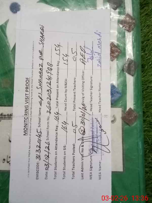 | EMIS Code: 31320145 | Name of School: GPS SHAHBAZ PUR SHARQI | |||