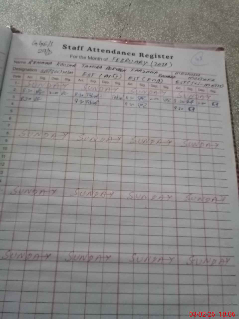 | Monitoring Date: 03-02-2026 | Start Time: 03-02-2026 10:05 AM | End Time: 03-02-2026 10:39 AM | Name of MEA: MA**** AH**** | |