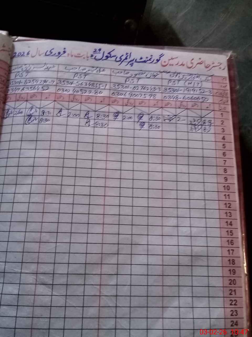 | Name: IF**** HU**** Designation: (School Headmaster's/Headmistress's) PTC/JV Phone/Cell Number: 03**** |
